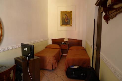 Zimmer 310, Blick von Badtür zum Bett