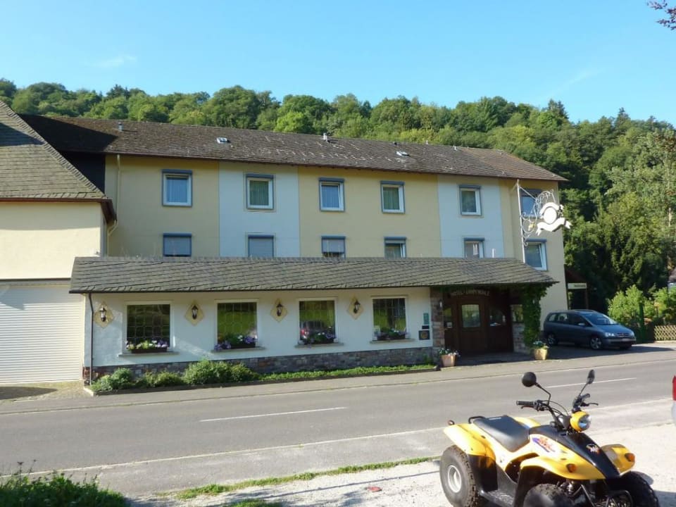 Blick vom Parkplatz zum Hotel
