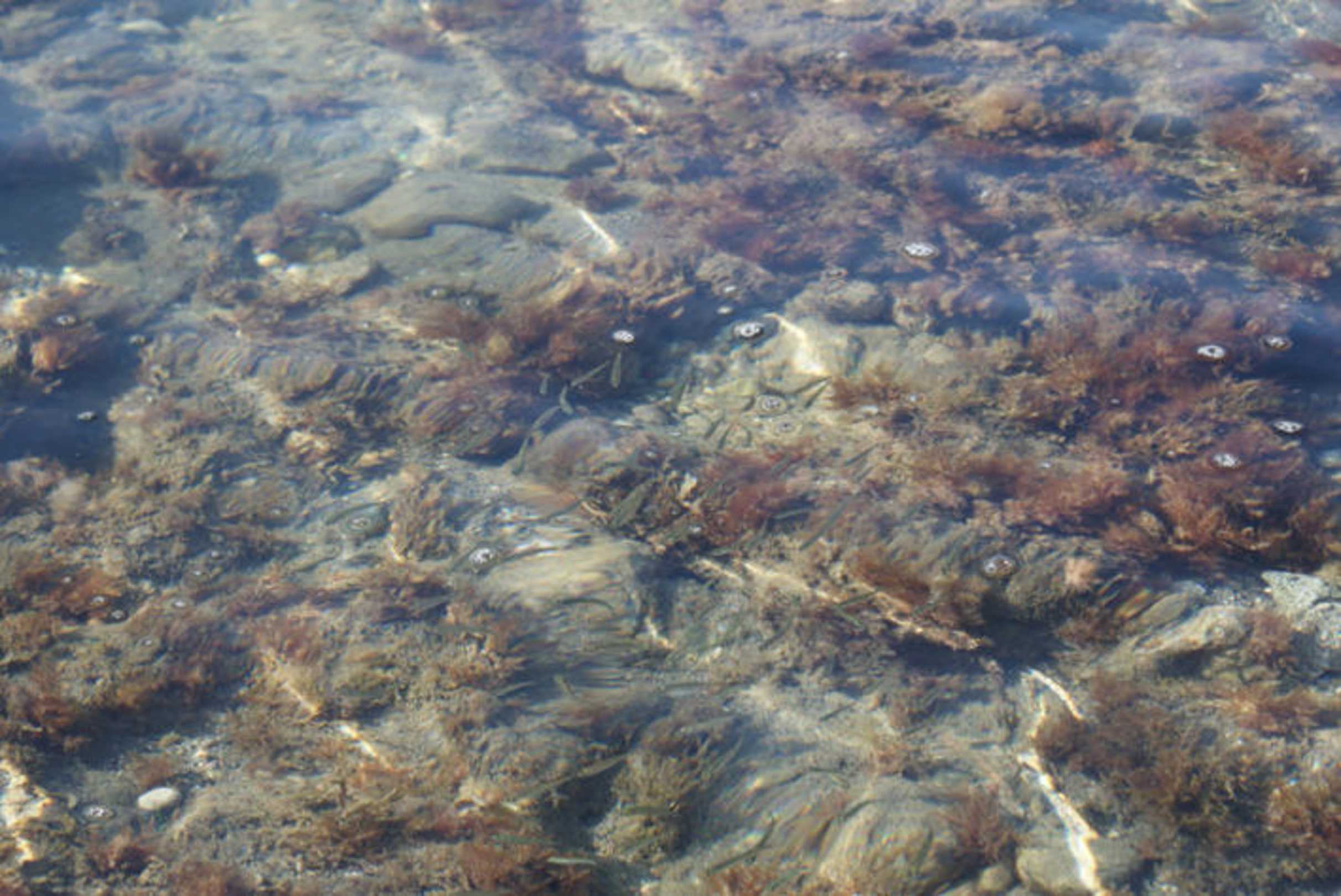 Das klare Meerwasserkleine fische im klaren mittelmeerwasser am ersten strand, den man in 5 minuten vom hotel aus erreicht.