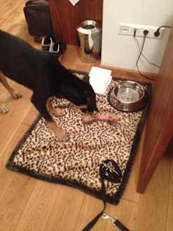 Für unseren Hund standen eine flauschige Decke, ein weiches, weißes Handtuch und eine Hundeschüssel bereit. Er hat sich sehr wohl gefühlt