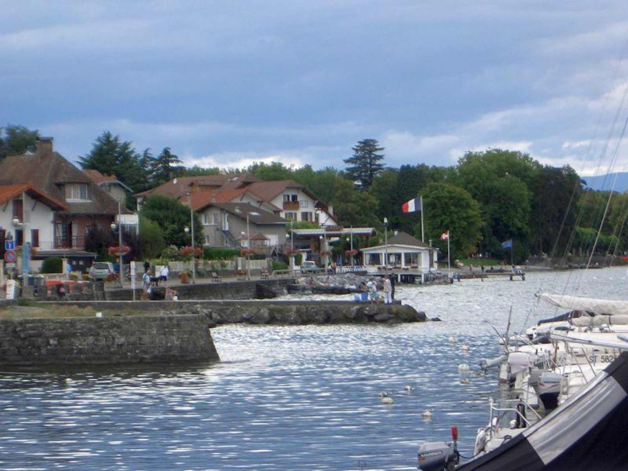 Hafen und Hotel im Hintergrund