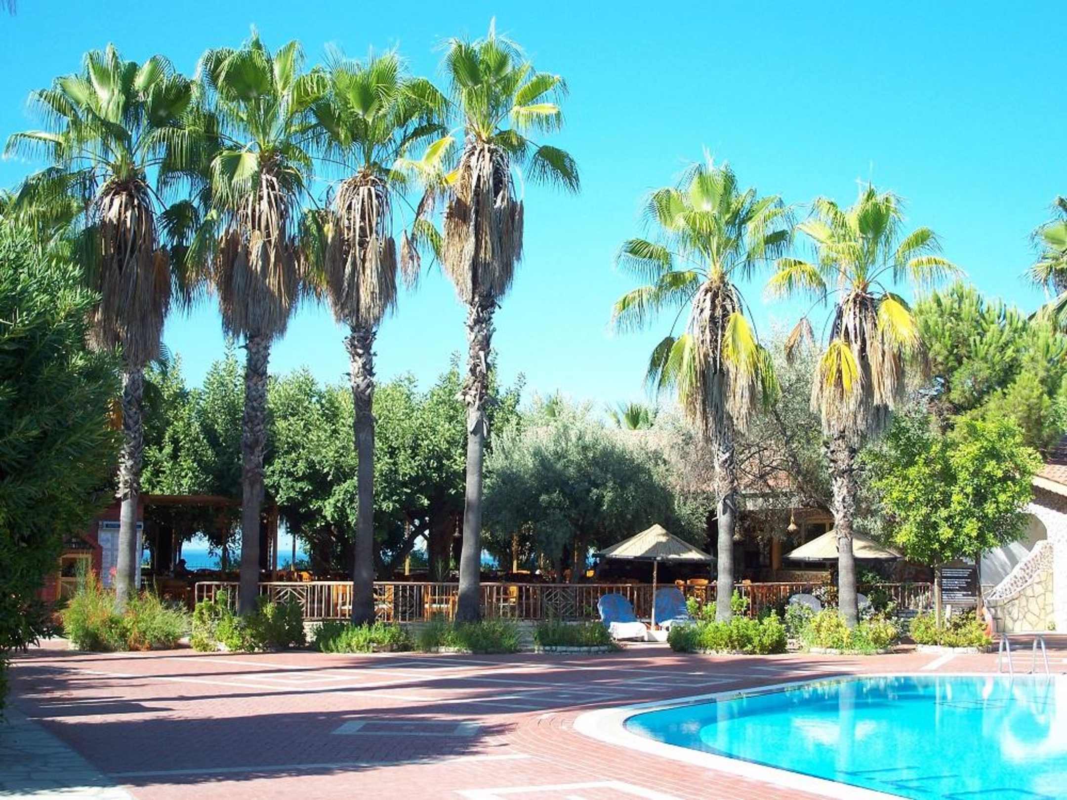 Pool im Hotel mit Palmen