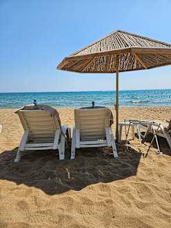 Super Strand direkt am Hotel mit genügend Liegen und Sonnenschirmen!