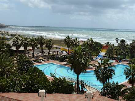 Blick vom Hotel über den Pool