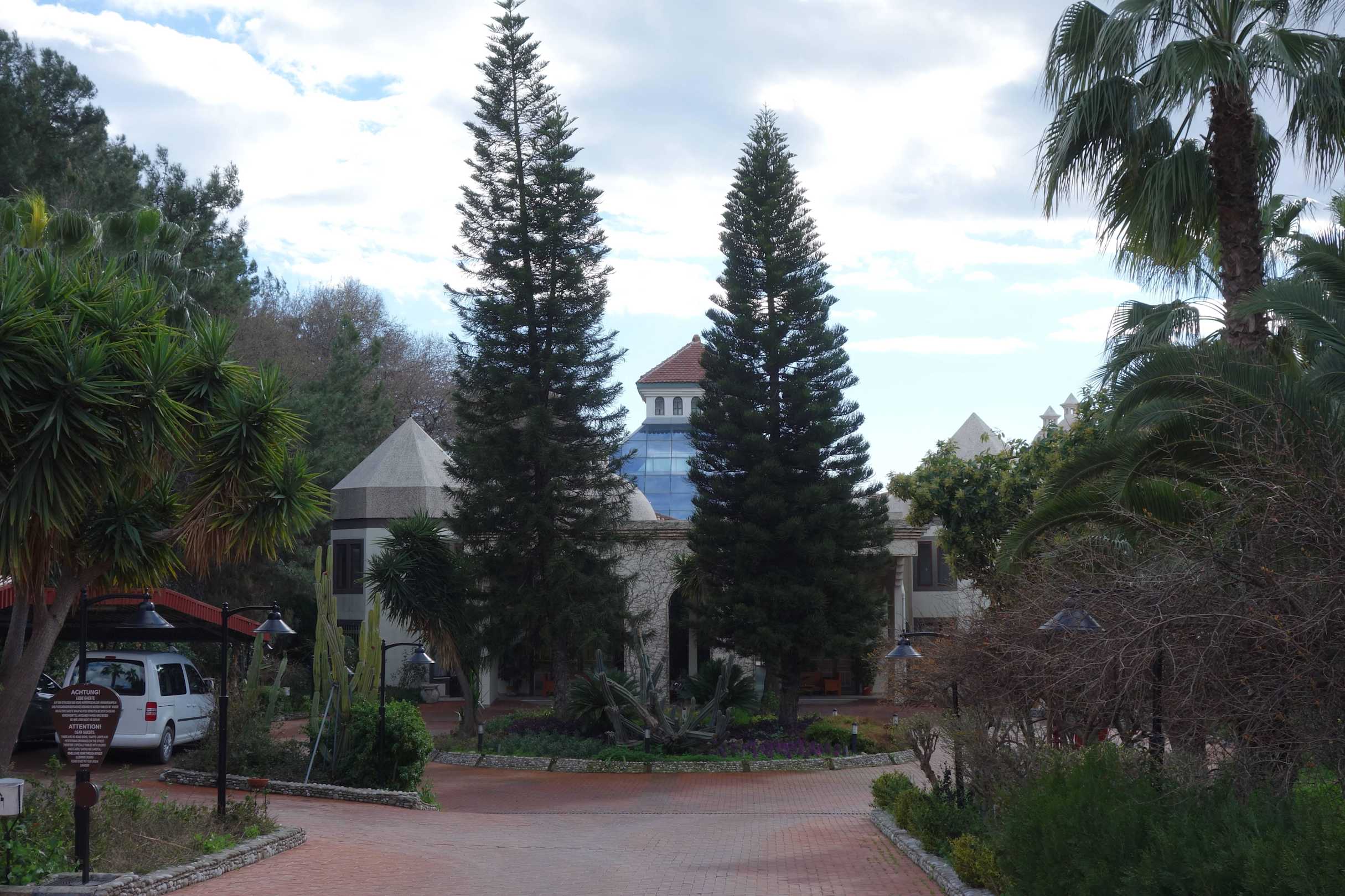 Rezeption- und Verwaltungsgebäude vom Eingang gese