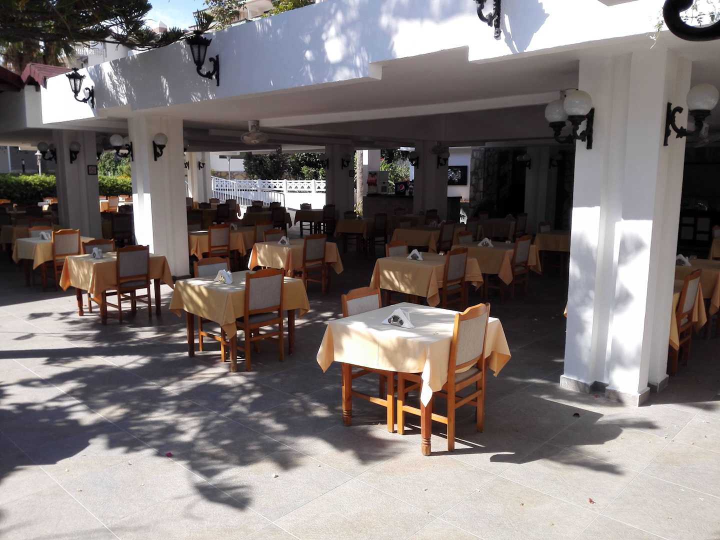 Die gedeckten Tische zum Frühstück / Abendessen