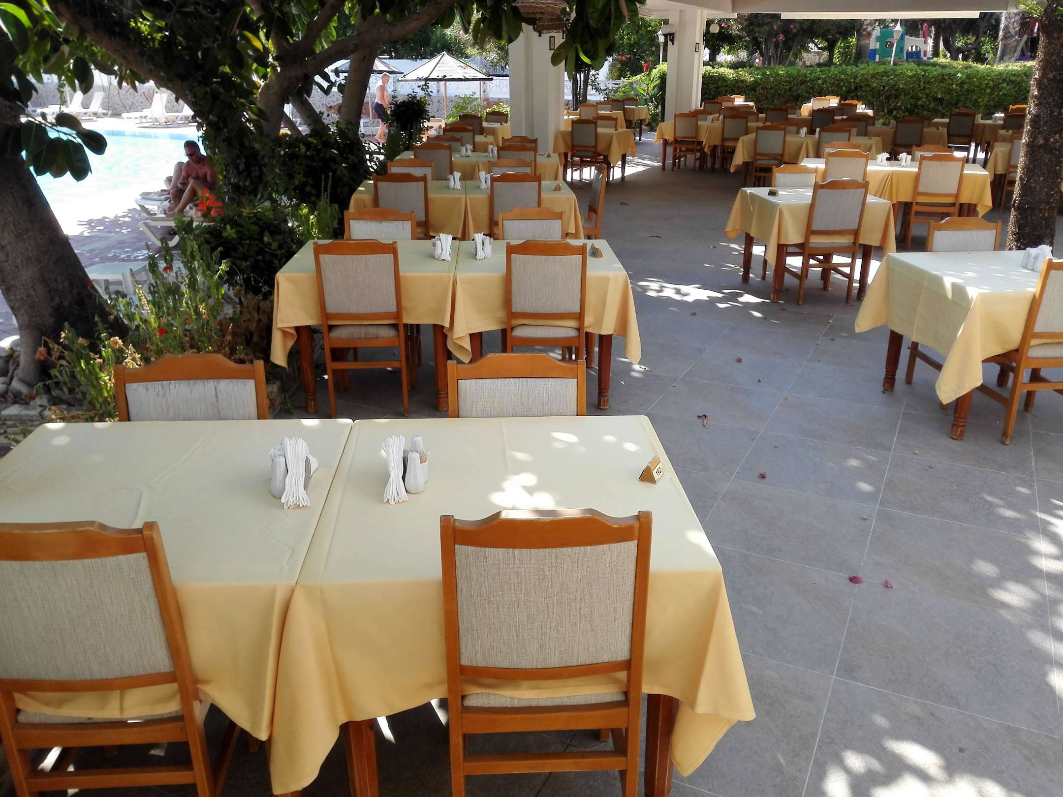 Die gedeckten Tische zum Frühstück / Abendessen