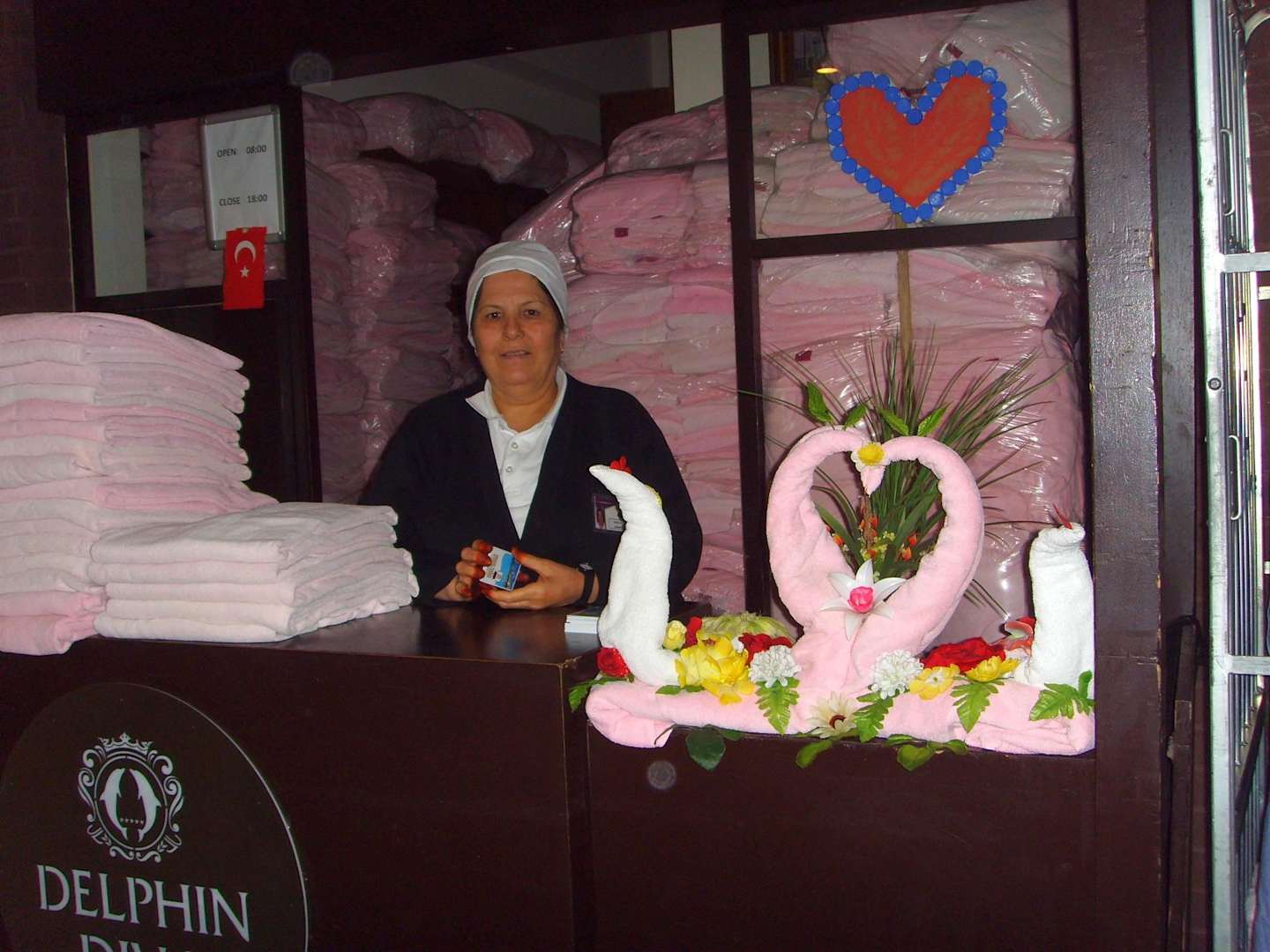 Nette Badehandtuchausgabe mit Deko