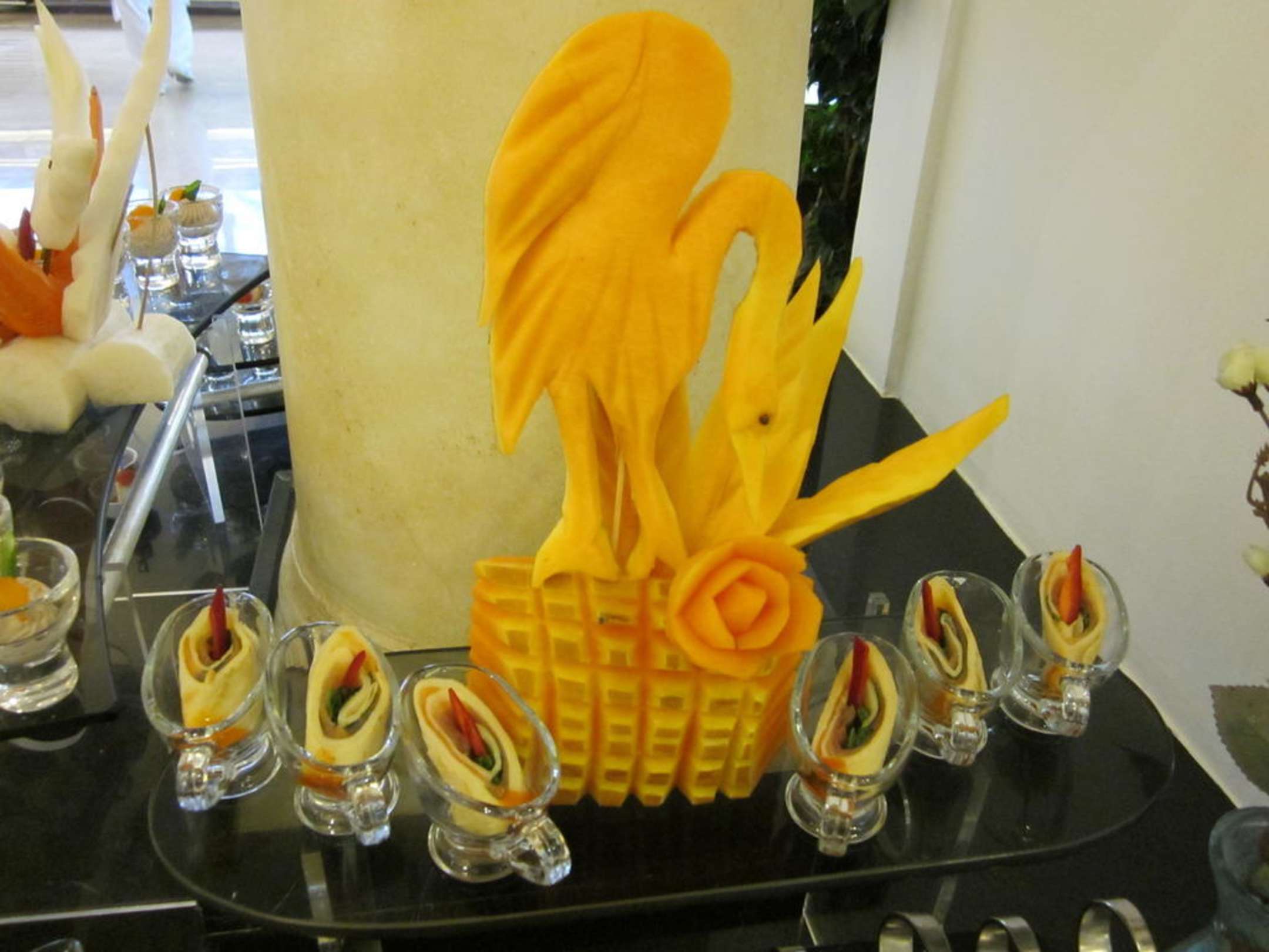 Kunstvolle Schnitzereien auf dem Buffet
