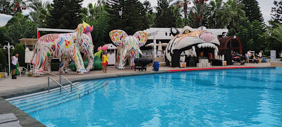 Beginn der Schaum-Party am Hauptpool