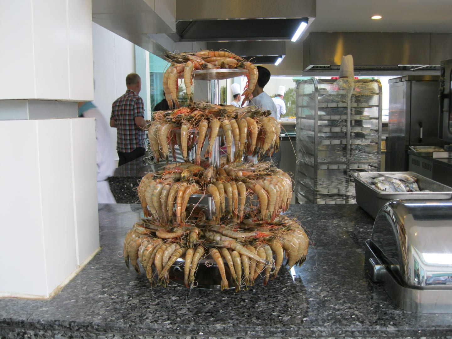 Riesengarnelen satt an der Fischtheke