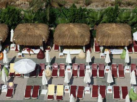 Hier sieht man einen kleinen Teil der Liegen und Balihütten.