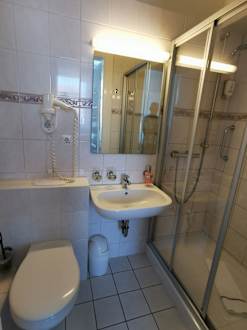 das kleine Bad mit bodentiefer Dusche.