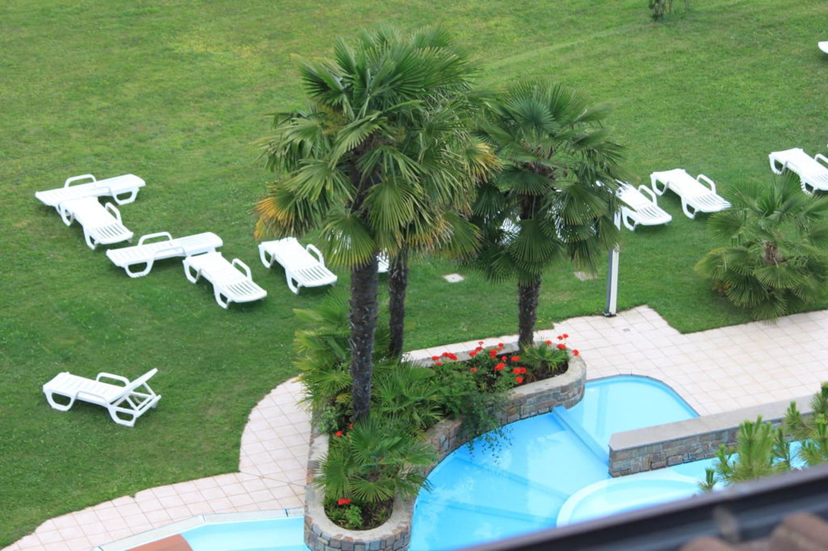 Blick auf Pool von Dachterrasse