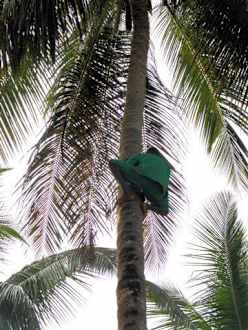 Auf die Bäumejederzeit kann man den Wunsch äußern eine frische Kokosnuss zu bekommen... flink gehts die Palme hoch