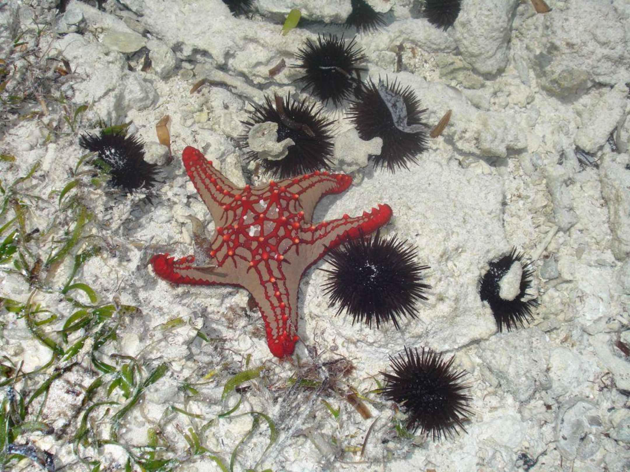 Seestern mit Seeigelnso kann man die Seesterne und Seeigel bei Ebbe am Riff sehen. Traumhaft schön