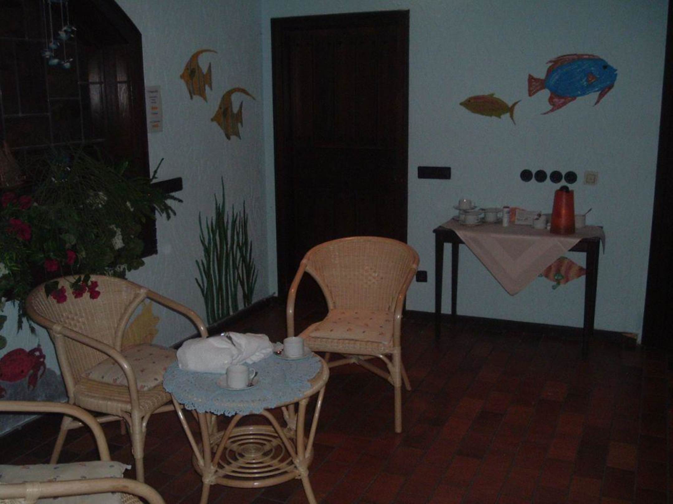 Sitzgruppe vorm Wellnessbereich. Hier gibt es den Kaffee für die Frühaufsteher.