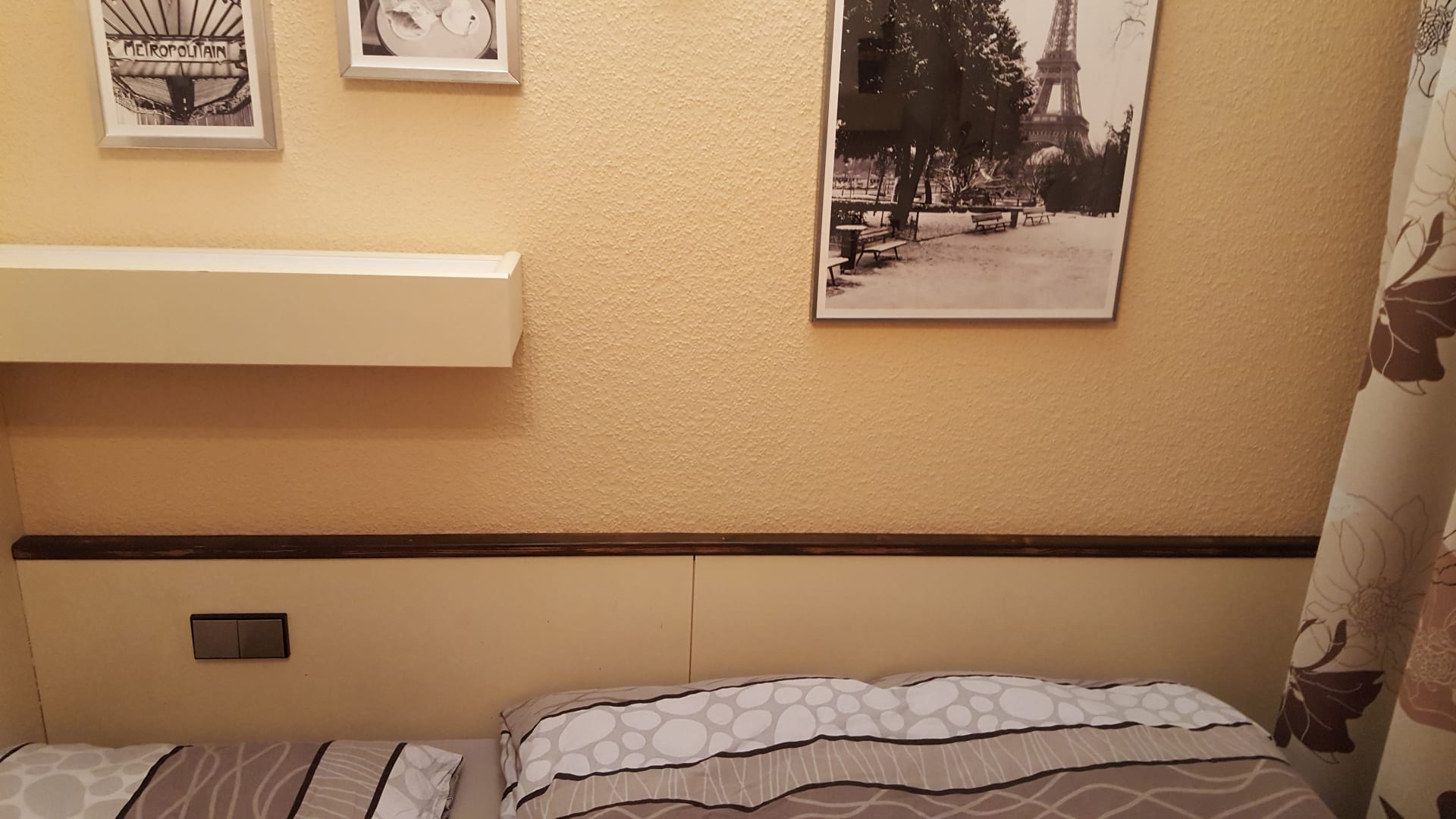 Bett mit schönen Bildern