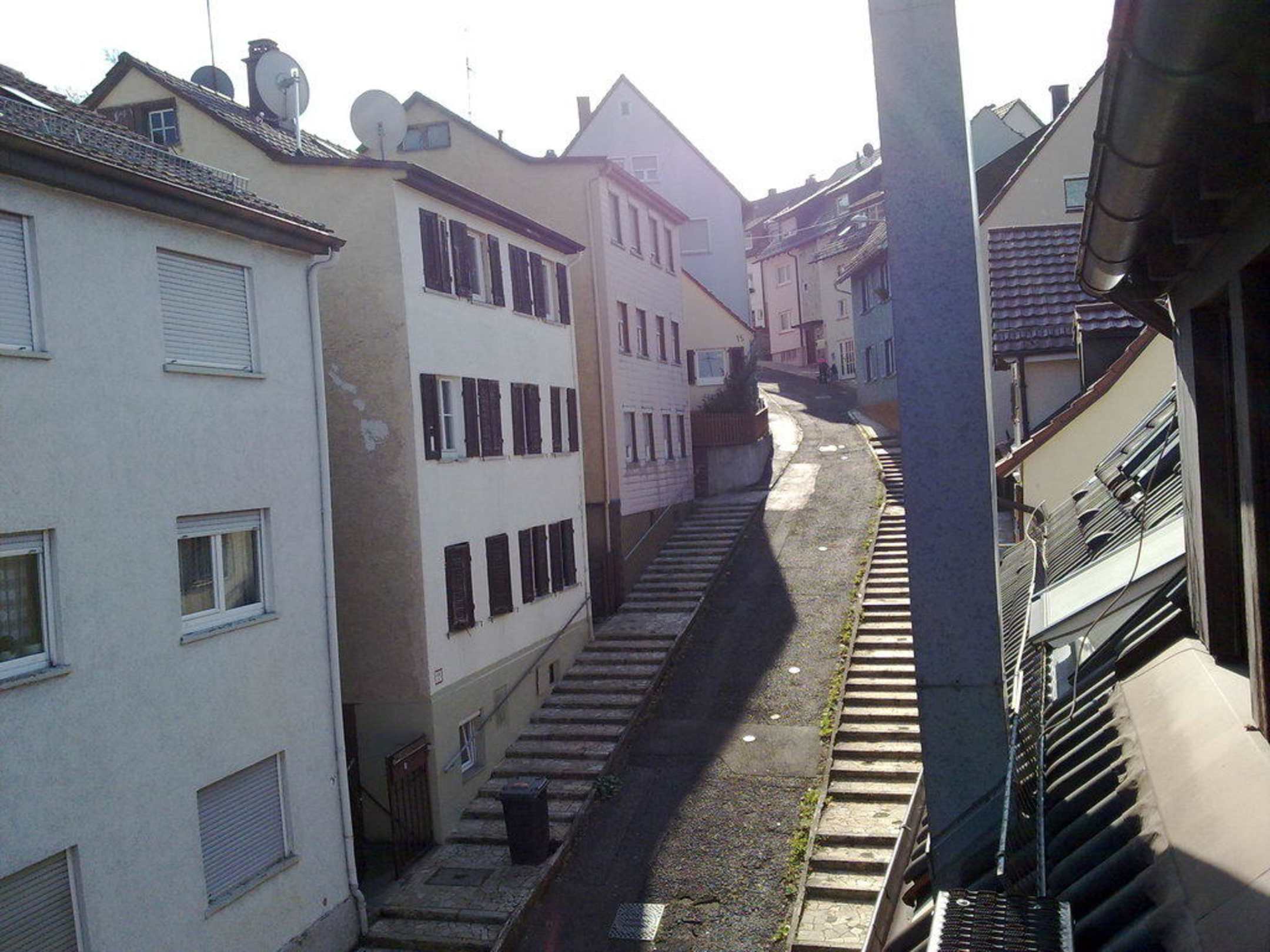 Ausblick aus dem Fenster auf eine Seitenstarße