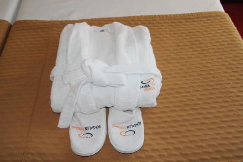 Bademantel und Latschen