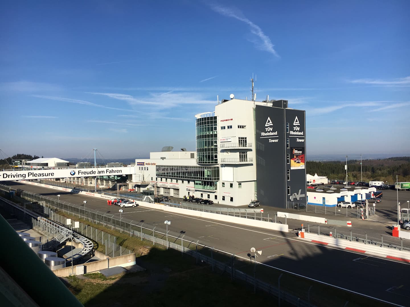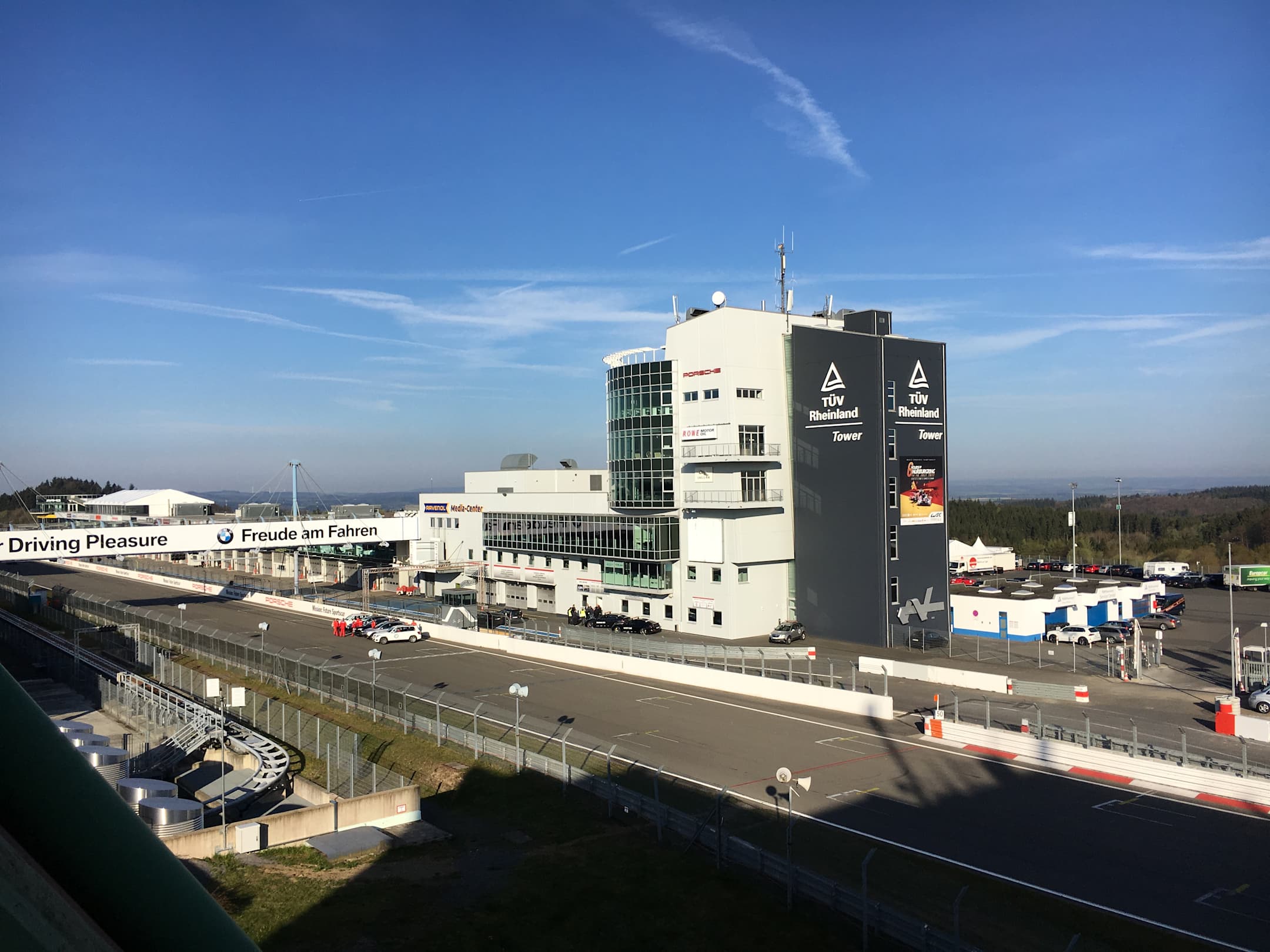 Ausblick vom Balkon auf Start und Ziel.