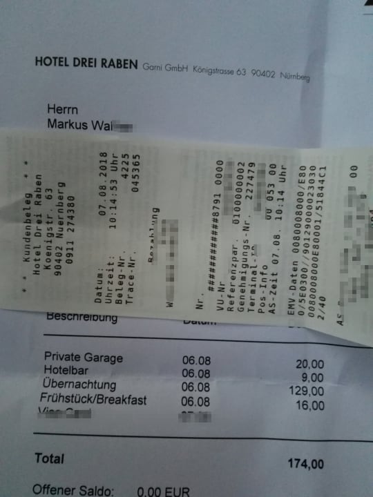 Rechnung. Tiefgarage kostet 20€ extra.