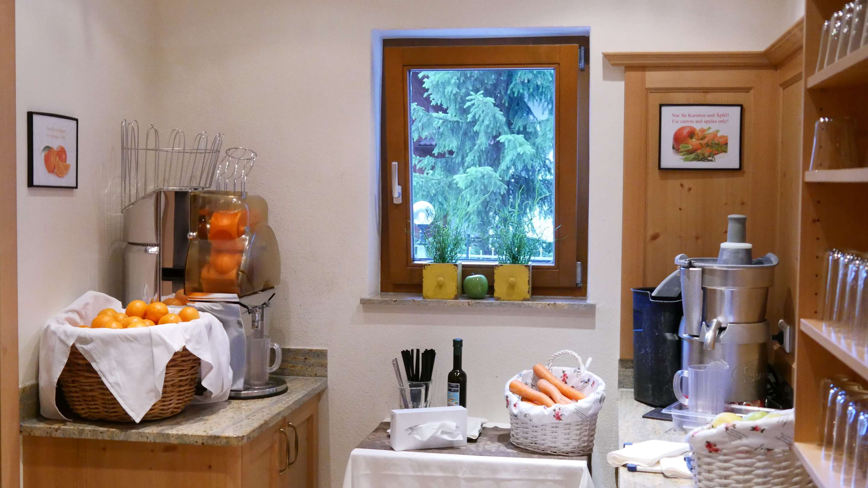 Frisch gepresster Orangen-, Möhren- und Apfelsaft