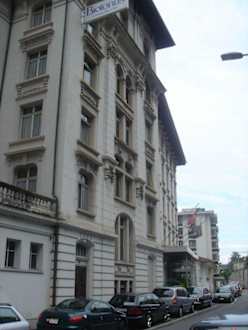 Hotelfassade hinter dem Haus