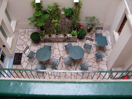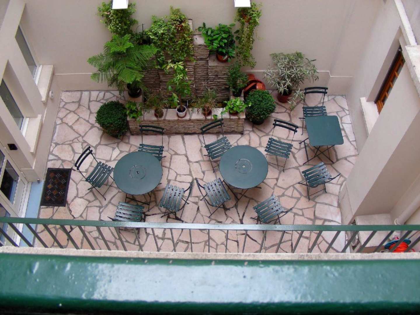 Blick in den Innenhof des Hotels aus dem Zimmerfenster