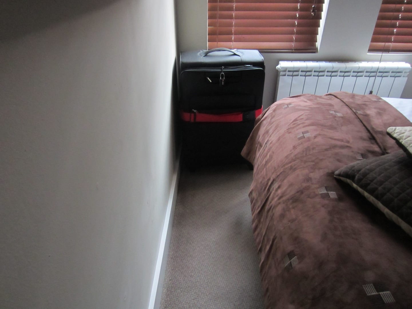 Zimmer 12: "Größe"Abstand zwischen Bett und Wand im Cosy-Single-Room 12. Man kann sich im Zimmer kaum bewegen.