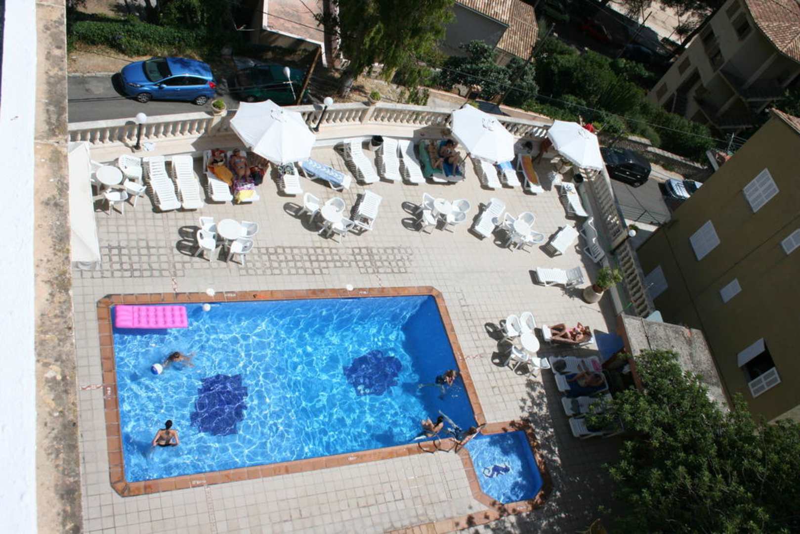 Blick vom Balkon auf Pool