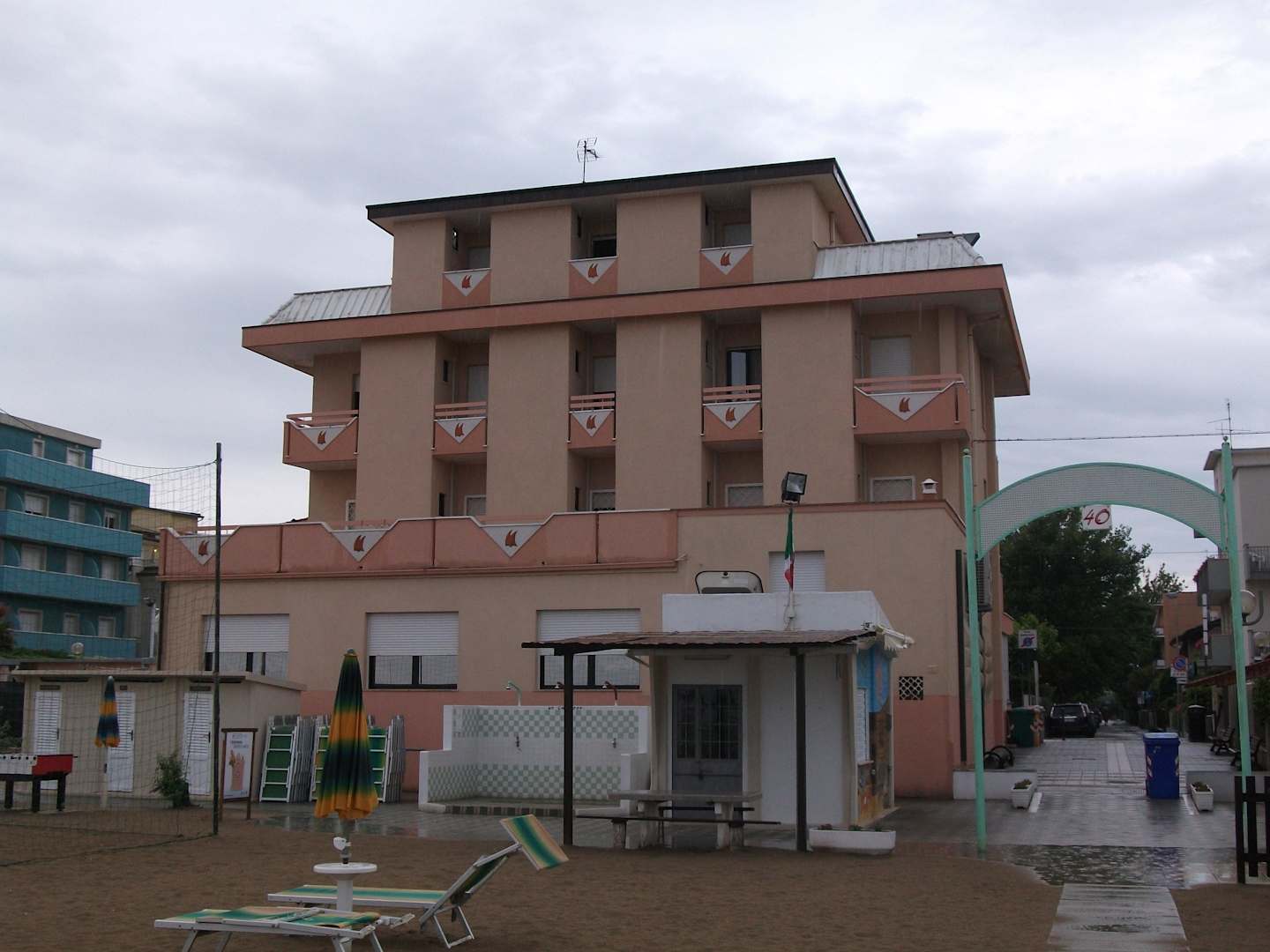 Blick vom strand auf hotel