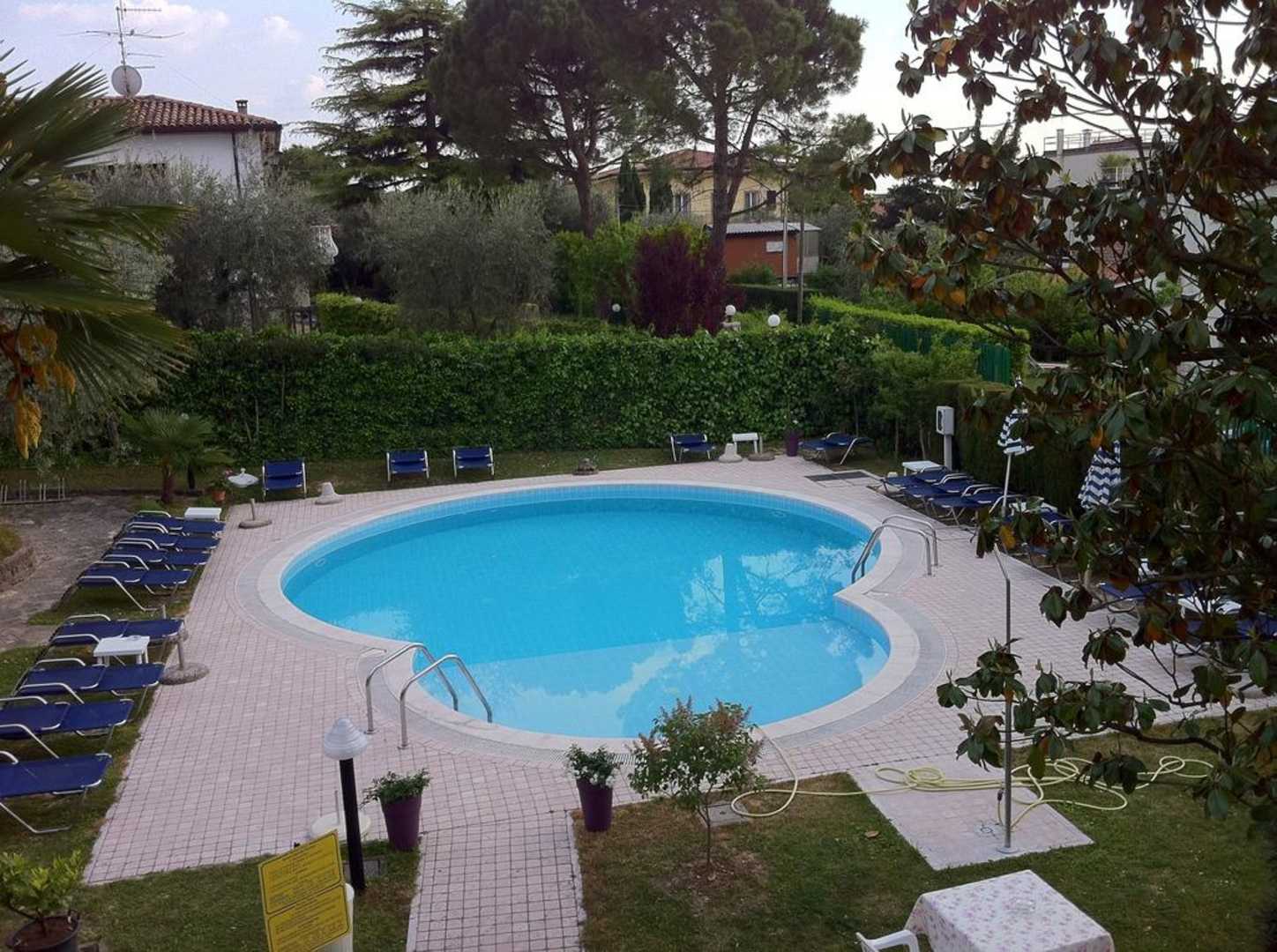 Blick vom Balkon auf die Poolanlage