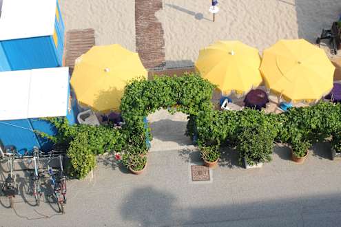 Eingang zum Hotelstrand von unserem Balkon