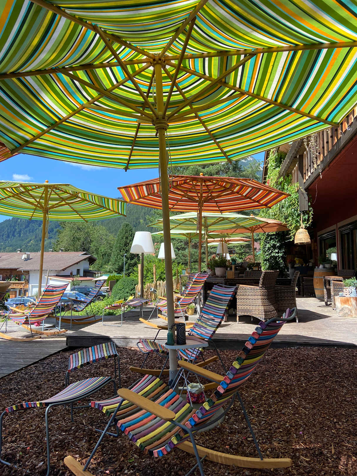 Die Terrasse ist super gemütlich und sehr stimmungsvoll, mit verschiedenen Sitzmöglichkeiten.
