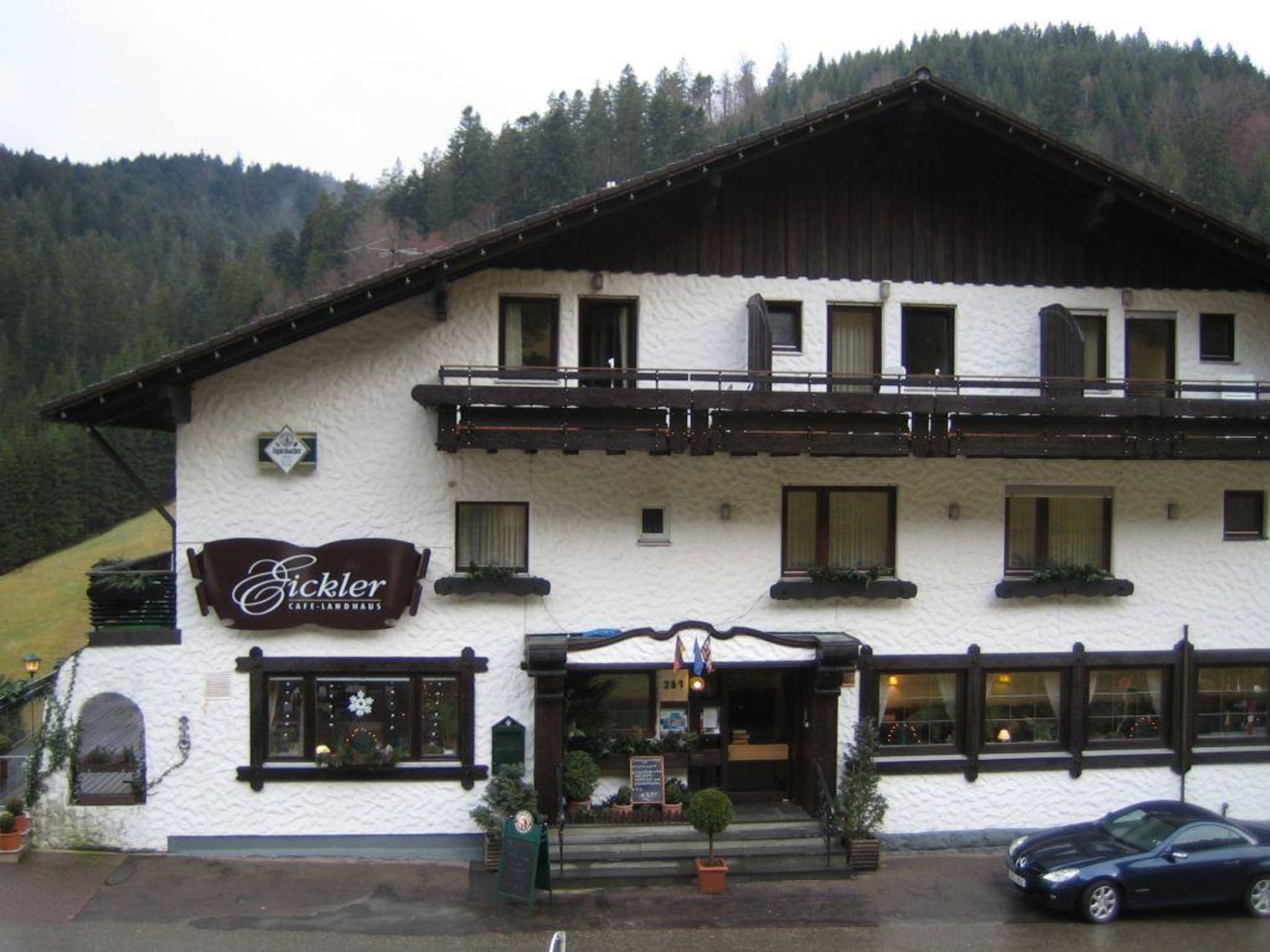 Eingang zum Landhaus EicklerUm das Haus sind Wiesen und gleich der Schwarzwald mit allen möglichen Wanderwegen.