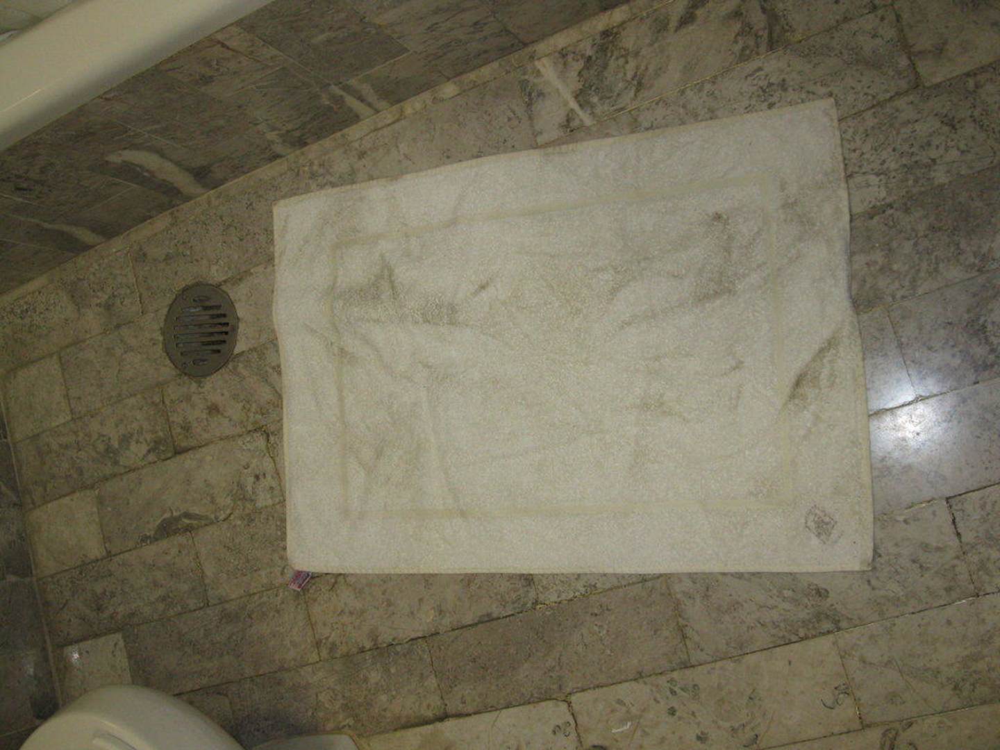 Wie ich schon in meiner Bewertung geschrieben habe, sah so das Fußhandtuch aus nachdem ich im Badezimmer den nassen Boden (vom Duschen) aufgewischt hatte. Ekelhaft!!!