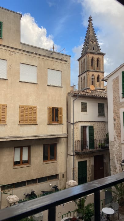 Ausblick aus dem Einzelzimmer auch die kleine Straße und Kirche