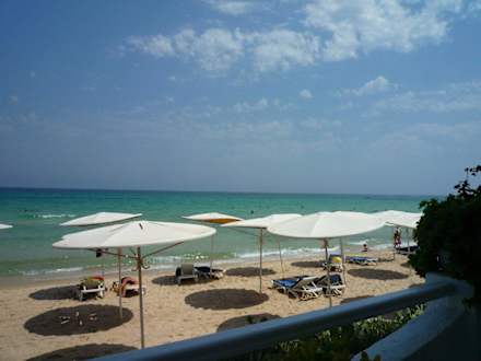 Blick von der Terrasse auf deb Strand
