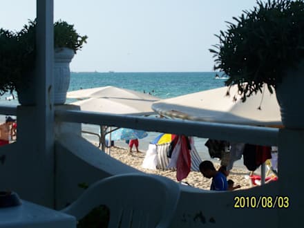 le matin je dejeuné sur la terrasse en bordure de la plage super