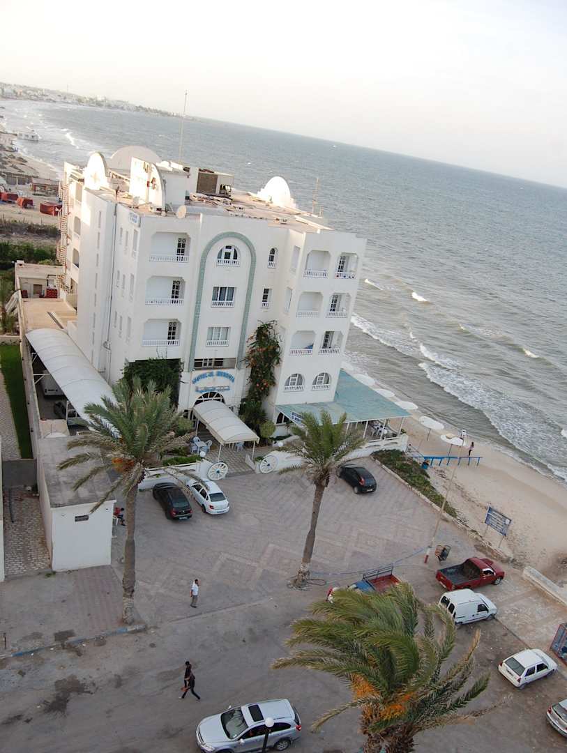Hotel und Strand von oben