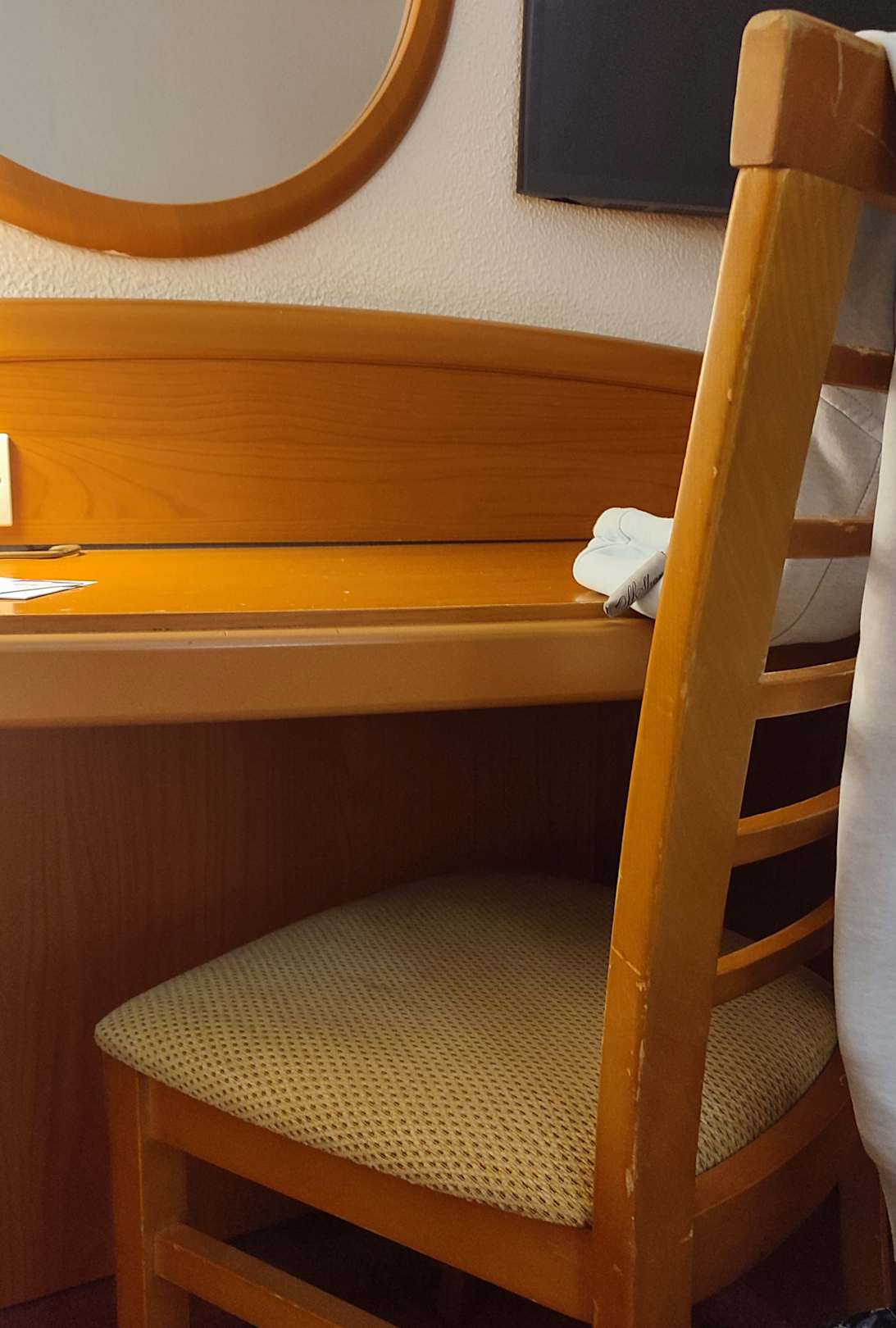alter abgenutzter Stuhl, auch der Schreibtisch wies einige Beschädigungen auf