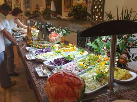 Salatbuffet von rechts fotografiert.