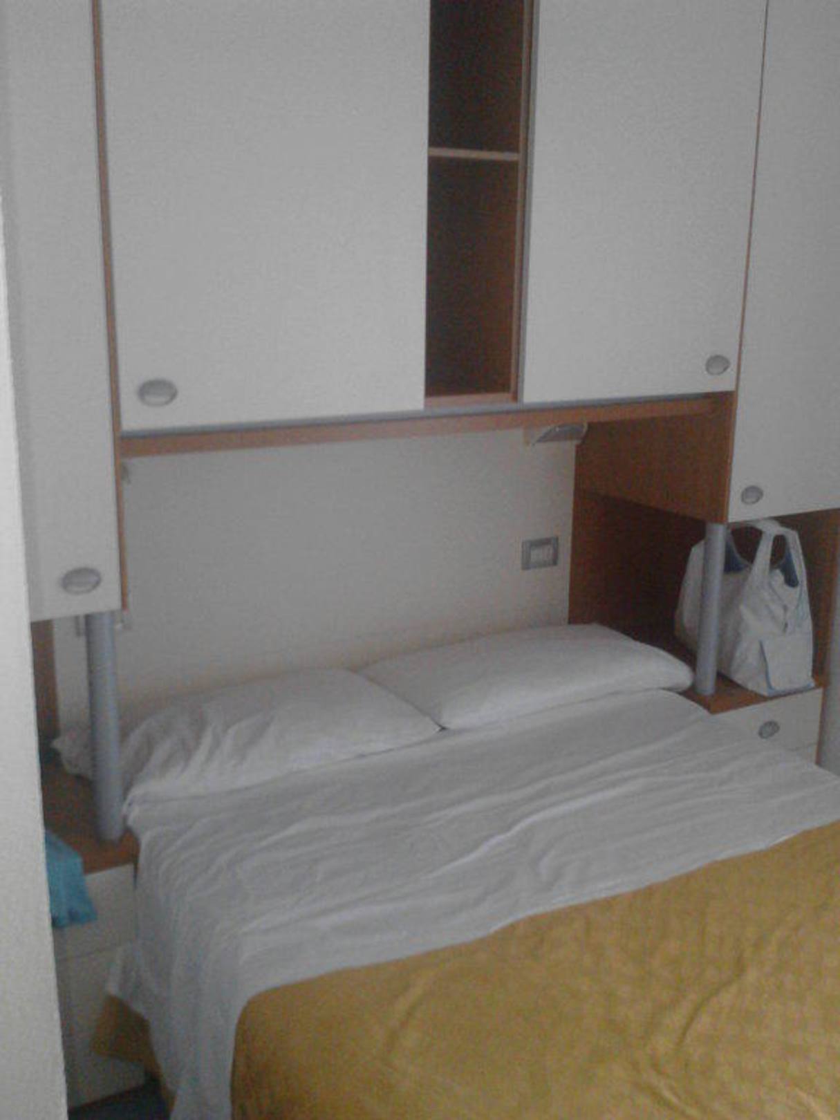 Neanche le camere di Ikea sono così ristrette,come potete notare l'armadio era montato sopra il letto matrimoniale.Non è sicuramente una camera adatta per chi soffre di claustr ofobia.