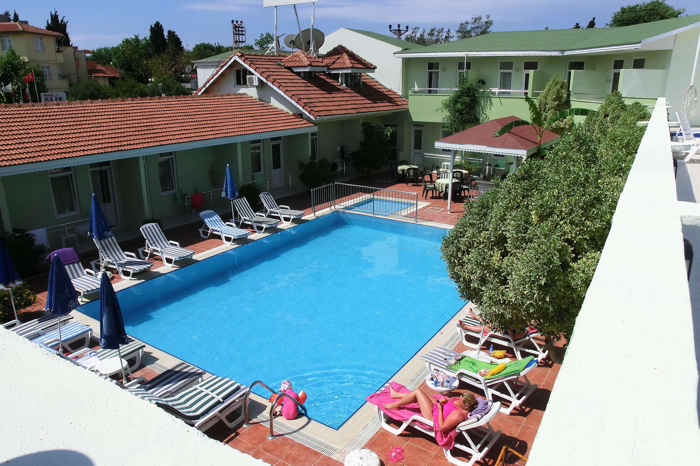 Die ca. 25 Zimmer gruppieren sich rund um den Pool.
