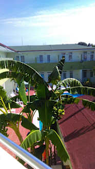 Blick vom Balkon auf den Innenhof