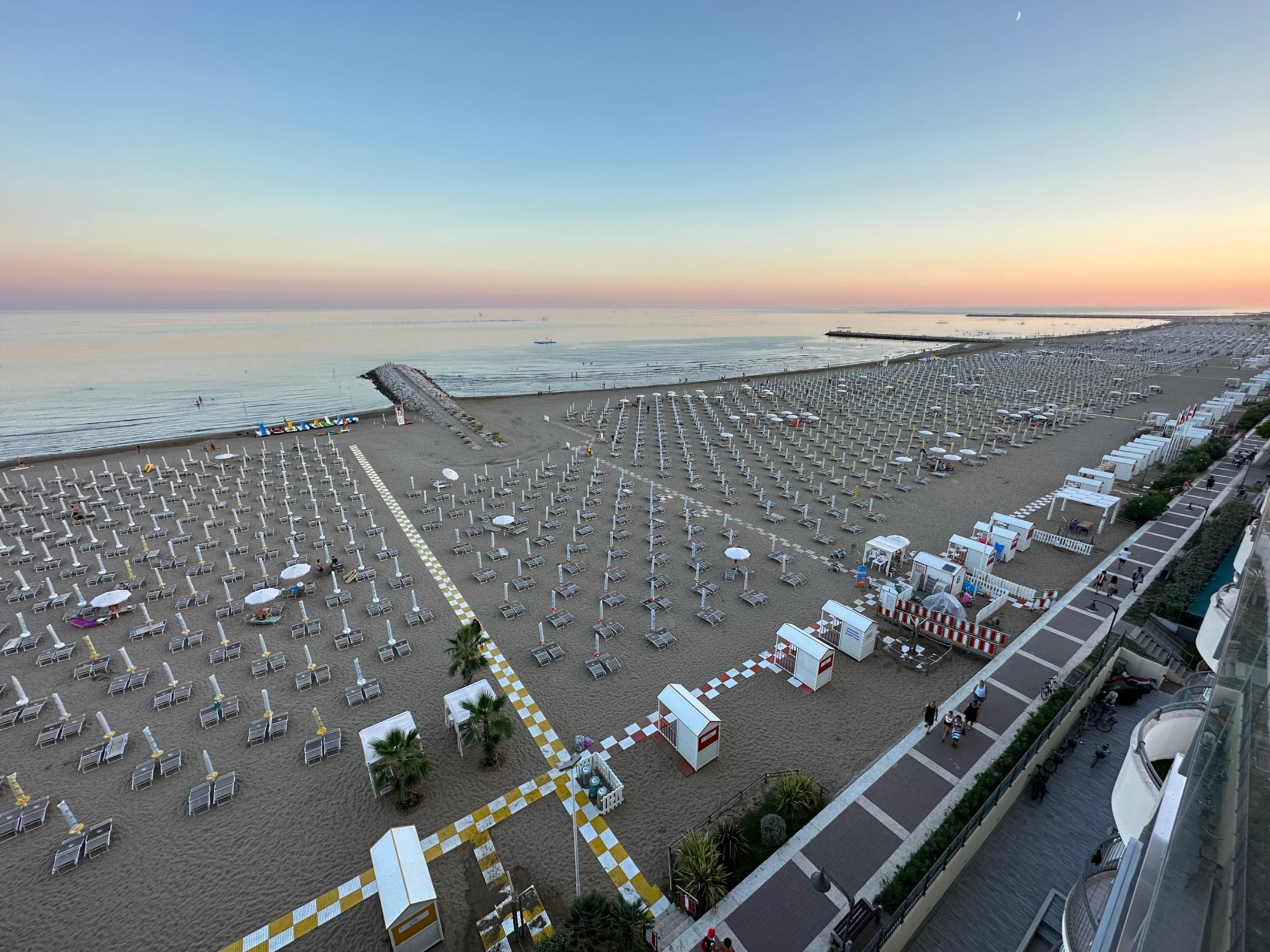 Ausblick auf den Strand am Abend von der Terrasse aus