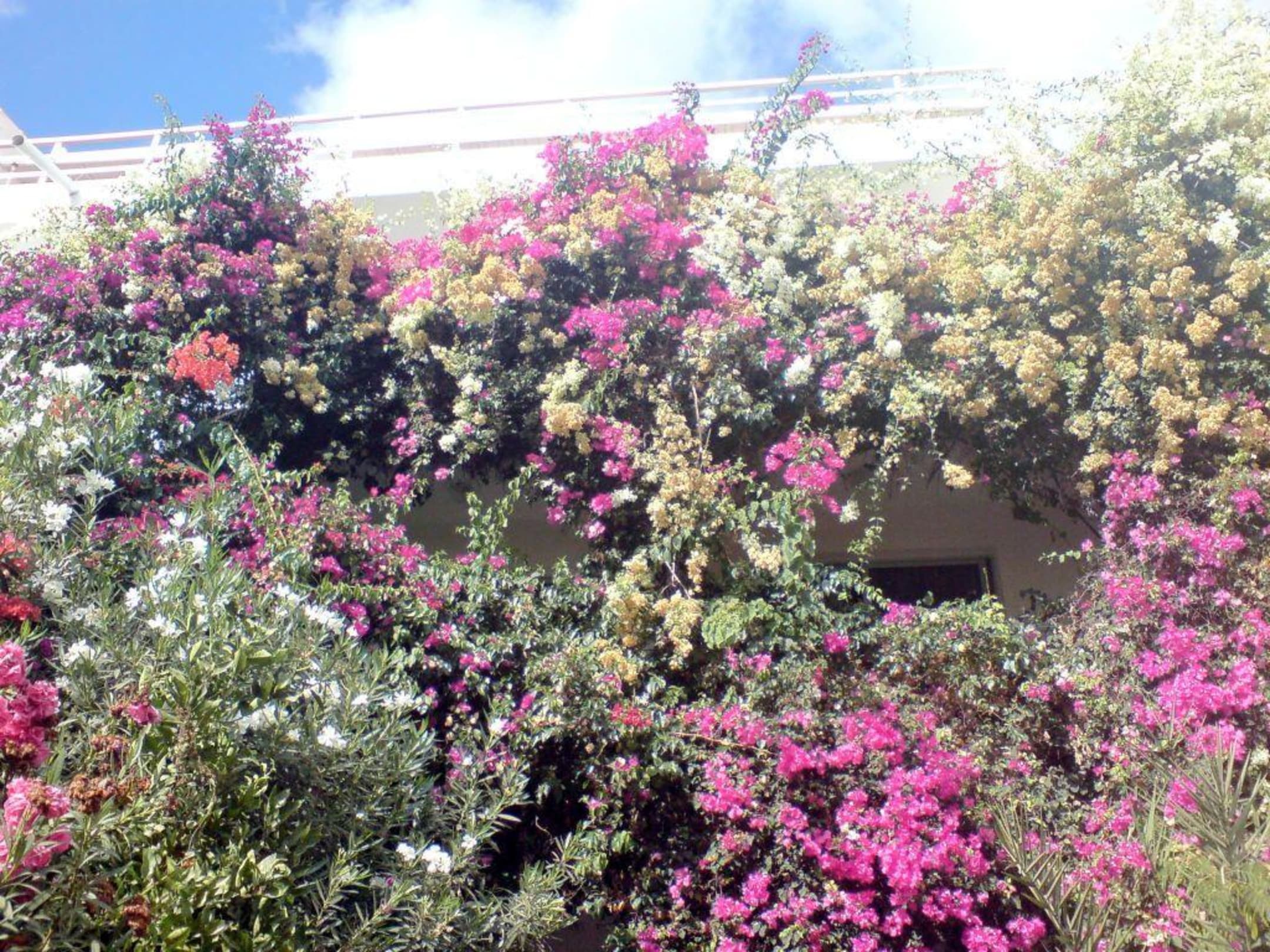 Blick auf die umrankten Balkone