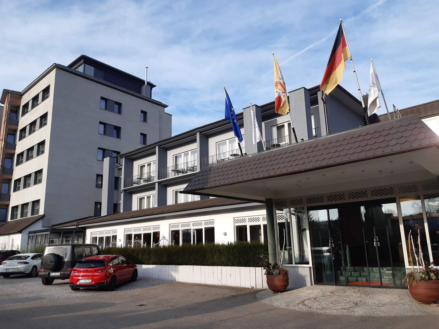 Hoteleingang und Parkplätze