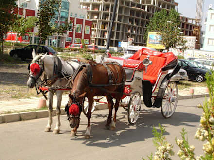Direkt vor dem Hotel kann man mit den Kutschen zum Sonnenstrand oder nach Nessebar fahren.
